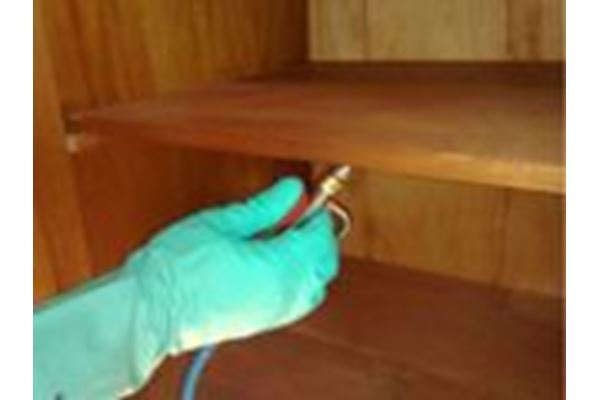 Injeção: Consiste na aplicação da calda cupinicida (saneantes) com auxilio de uma seringa diretamente em orifícios e frestas.