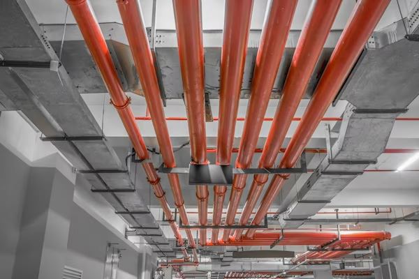 Toda a rede de águas pluviais do edifício, da cobertura até a rua, incluindo toda a parte externa do edifício.